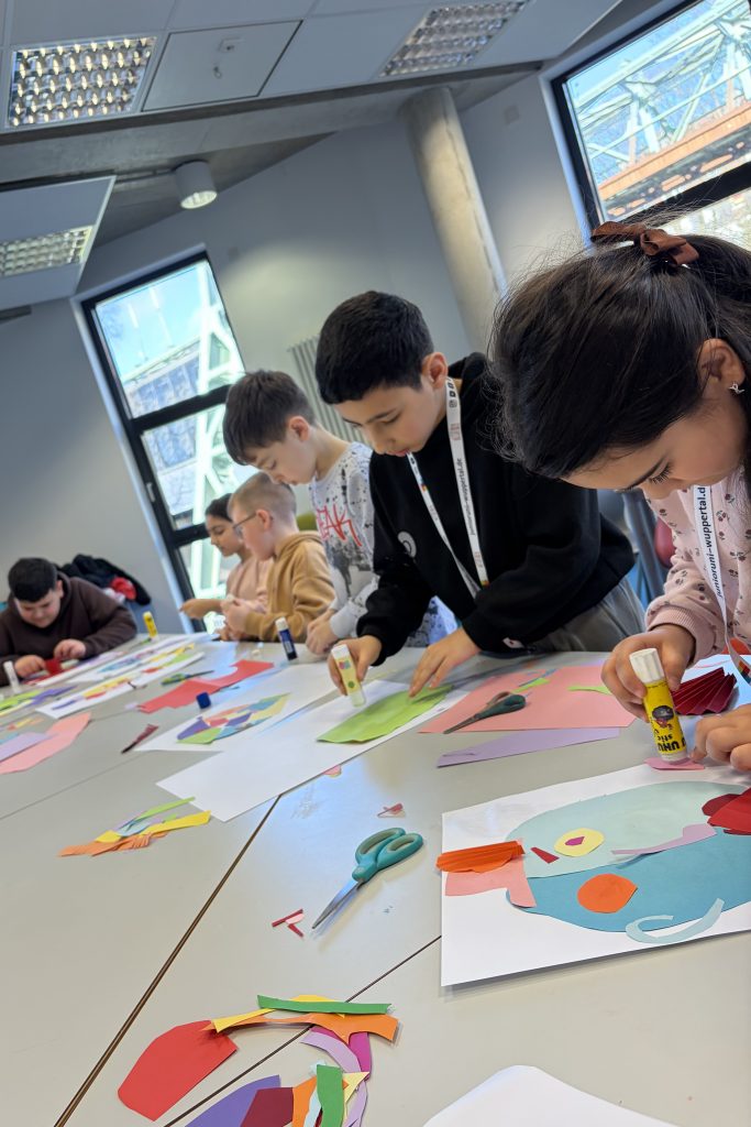 An Tag 2 wurde eine weitere Technik angewendet. Die Kinder berichten über die Anfertigung ihrer Collagen: